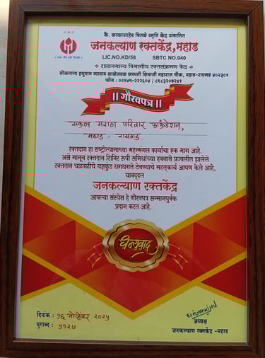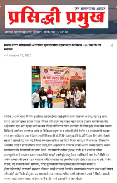 सकल मराठा परिवार महारक्तदान शिबिर २०२५ – राज्यभरातून ७५२ रक्त पिशव्यांचे संकलन 🩸🚩